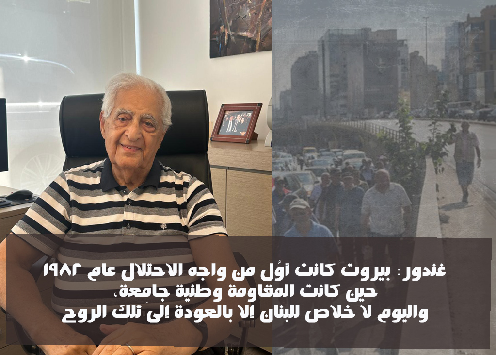 غندور: بيروت كانت أوَّل من واجه الاحتلال عام 1982 حين كانت المقاومة وطنية جامِعة، واليوم لا خلاص للبنان إلا بالعودة إلى تلك الروح